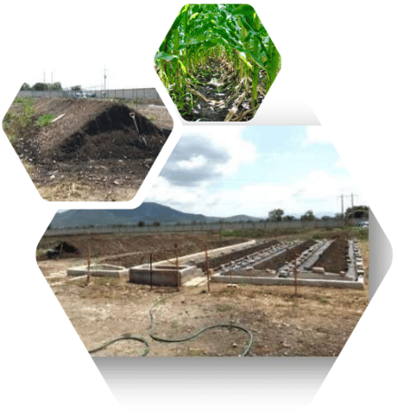 • Combinamos el estiércol con Azufre y Sulfato de amonio haciendo camas para su mejor descomposición.