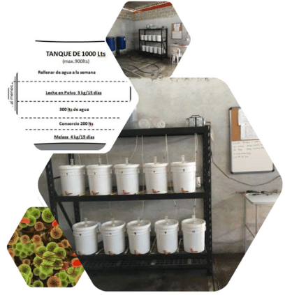 9. Consorcio de 60 microorganismos eficientes: bacterias ácido lácticas, levaduras, fotoautotróficas.